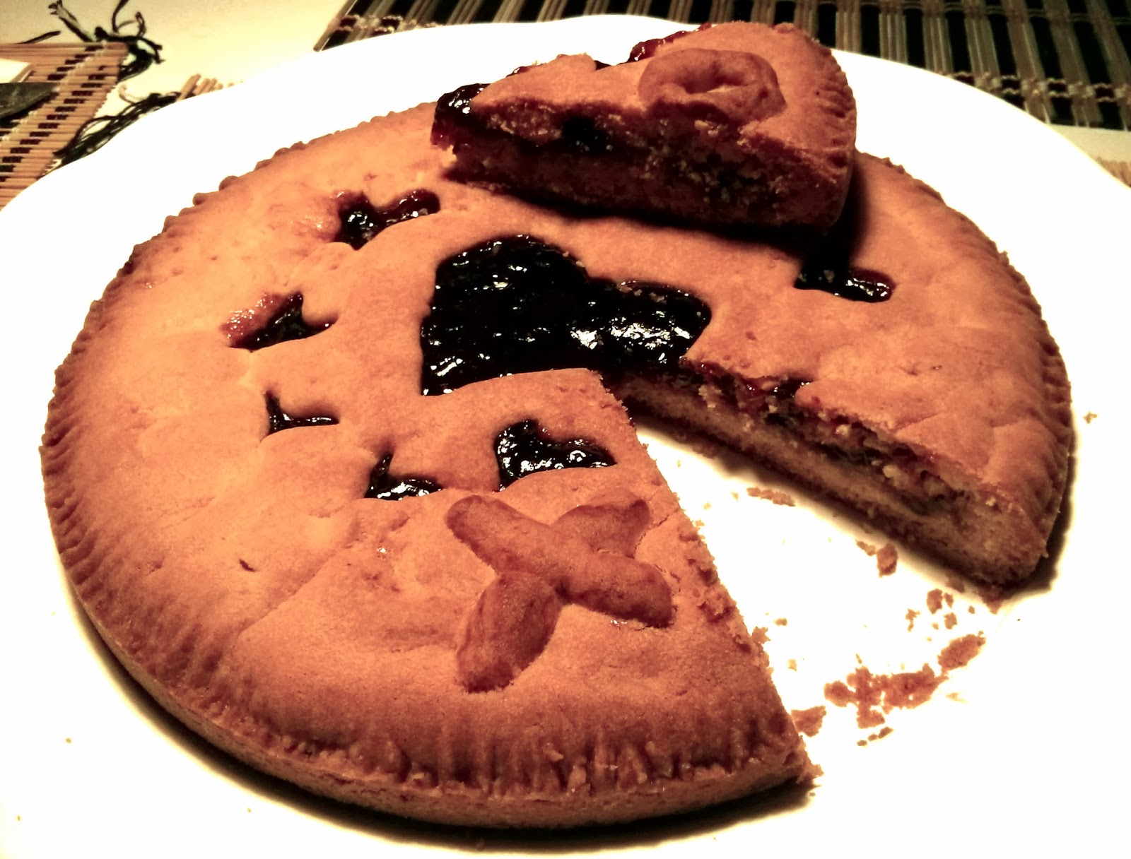 Knead butter and icing sugar in a bowl. Once blended, add the egg, baking powder and flour and keep kneading until you get a firm yet smooth dough that doesn't stick to the bowl (note that some additional flour might be needed, but don't overdo it). Wrap it in some cling film and put to the fridge for 1/2 hour to rest. Spread 3/4 of the dough in a greased tray (22-25 cm) and pinch it all over with a fork. It should not be too thick. Spread the strawberry jam on top (don't let it reach the sides of the tray though). Now you can use the remaining dough any way you like - create shapes, stripes or, as we did here, make some heart-shaped patterns on it and place it on top of the jam. Secure the two layers of dough with a fork to prevent jam from spilling and to make it look pretty. Bake in preheated oven at 170 degrees Celcius for 30-45 minutes (depending on your oven) - it should be ready when it gets a deep golden colour.